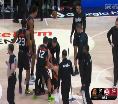 雪上加霜,布克90度崴脚伤退太阳一场伤俩主力,离场前三节就得31分